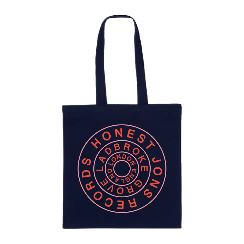 Red and pink on dark navy. Premium cotton, smooth and durable. 67cm shoulder strap.